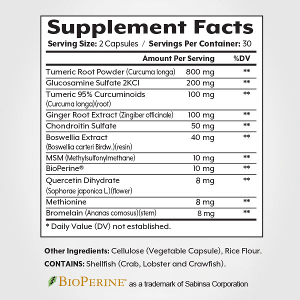 Looking to reduce inflammation and discomfort in your joints? Our Tumeric Supplement with BioPerine may be able to help! This potent supplement features tumeric, which has been shown to help maintain joint health, as well as black pepper extract (BioPerine), which helps increase absorption of the tumeric. Plus, it comes in a convenient capsule form, so you can take it on the go!